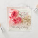 Uma bela imagem delicada de um rosa em tons cor-de-rosa suave. No fundo está uma corda de pérolas. Todo o efeito é atenuado por uma pena delicada. Uma convite de aniversário encantadora de 51ruas. Alterar a parte de trás para os detalhes do seu próprio partido