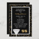 Este convite de aniversário 55º excelente apresenta um confete dourado sobre preto no fundo com um vidro e o fazer "55" para um convite de excelente para uma festa de aniversário 55º. Direitos autorais