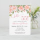 Convites de 55 anos florais, florais, cor-de-rosa - festa 'alô 55!' com fundo branco e impressão bonito que você pode personalizar com toda a sua informação festa de aniversário. com cor de pêssego e rosa - elegante.