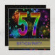 Um divertido 57º convite de aniversário com cores felizes, bolhas e fogos de artifício. Um cartão de excelente para qualquer idade. Veja toda a gama de convites e cartões na minha loja.