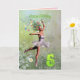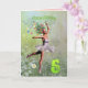 Uma bela fada de flores de bailarina dançando num cartão de aniversário para uma criança de cinco anos.