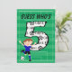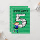 Um design de futebol giro para os convites para a Festa de aniversário de 5 de um futuro jogador de futebol ou fã de futebol, apresentando um grande número cinco com bolas de futebol e a palavra "gol" escrito dentro. Um jovem jogador de futebol de uniforme azul e preto está ao lado do número. Perfeito para um presente de aniversário de 5 ou favor de festa. Visite o CelebrationBazaar para ver a coleção de presentes, favoritos para festas e artigos de papelaria com este design de futebol giro. Outros números e cores de equipe disponíveis.