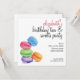 Um lápis de aquarela ilustrando cinco magnarons deliciosos e coloridos, um convite adorável para qualquer ocasião: aniversários, chás de panela, chás ou encontros amigáveis, especialmente para aqueles com um doce dente!