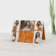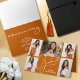 Adicione suas cinco fotos favoritas à frente desses anúncios de graduação dobrados em laranja queimada, apresentando a palavra formando em letra chic juntamente com seu nome e ano de aula. Os detalhes do seu anúncio estão no dentro. Mais designs e cores feitas em nossa loja, incluindo convites de festas, cartões salve a data e postais.