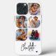 5 Foto moderna Trendy Simple Heart Personalised Name iPhone Capa de telefone apresenta cinco de suas fotos favoritas com seu nome personalizado em um elegante script de caligrafia negra acentuado com coração de amor. Personalize editando o texto na caixa de texto fornecida. Perfeito para o aniversário, Natal, Dia de as mães, chás de fraldas, chás de panela, mãe, irmã, primos, melhores amigos e muito mais. DICA DA FOTO: centralize sua foto antes de carregá-la no Zazzle. Elaborado por ©Evco Studio www.zazzle.com/store/evcostudio