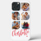 5 Foto Moderna Tendy Simple Heart Personalised Name iPhone Capa de telefone apresenta cinco de suas fotos favoritas com seu nome personalizado em um elegante script de caligrafia rosa acentuado com coração amoroso. Personalize editando o texto na caixa de texto fornecida. Perfeito para o aniversário, Natal, Dia de as mães, chás de fraldas, chás de panela, mãe, irmã, primos, melhores amigos e muito mais. DICA DA FOTO: centralize sua foto antes de carregá-la no Zazzle. Elaborado por ©Evco Studio www.zazzle.com/store/evcostudio