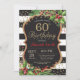 60º Convite de Aniversário para Mulheres. Festa de aniversário de Natal Convide. Flor Floral de Natal. Negro, vermelho e Dourado brilho. Black and White Stripes. Digital Imprimível.. Para mais personalização, clique no botão "Personalizar" e use nossa ferramenta de design para modificar este modelo.