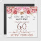 Rapariga reluzente, fundo cor-de-rosa milenar, com tipografia de nome de script de rico. Feliz 60 anos e fabuloso design de aniversário. Rosas rosa e borboletas na borda superior. Excelente para a 60ª comemoração. Salve o lembrete de celebração de data.