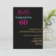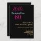 Este é um convite de aniversário moderno e na moda 60º. Este design chic está em tipografia rosa forte, azul e dourada e fundo preto. É um design personalizado, com o texto "Hello 60" e o espaço que você pode adicionar seu nome e detalhes da festa. Esta design de na moda é perfeita para uma elegante e inesquecível celebração da 60ª festa de aniversário. Para personalizar, basta adicionar seu nome, data, local da festa e informações de RSVP na caixa de texto personalizar. Para alterar a cor ou a fonte, dê uma olhada na ferramenta de edição de design. Se você precisar de ajuda com personalização, produtos correspondentes ou para um projeto personalizado, entre em contato comigo via chat zazzle.