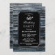 Um convite de 60 anos para a madeirinha azul, de prata rústica, com o texto branco destacado sobre fundo preto.