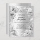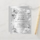 Um fundo de olhar mal prateado. Decorado com flores e uma fita de prata falsa e diamantes falsos. Personalize e adicione seus nomes e detalhes. 1 folha = 1 convite impresso de borda a borda.