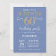 Surpreenda o 60º Convite de Aniversário com Fundo Azul e Dourado de Brilho. Chalkboard. Aniversário Adulto. Homens ou Mulheres no Dia Convidam. Qualquer idade.