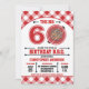 60º Aniversário do Churrasco com uma grelha vermelha e um padrão de toalha de gingham. Personalize com seu próprio texto. Ilustração original por pj_design.
