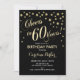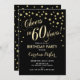 design elegante do 60º Convite de aniversário em ouro brilhante falso e preto. Saúde para 60 anos!