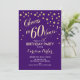 design elegante do 60º Convite de aniversário em roxo com ouro falso brilhante. Saúde para 60 anos!