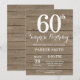 60.º Convite de Aniversário para Surpresa. Fundo Da Madeira Rústica. Vintage Retro Birthday. Aniversário Adulto. Homens ou Mulheres no Dia Convidam. 13 15 16º 18º 20 21 rua 30 40º 50º 80 de 60º 70 de 100º, qualquer idade.
