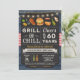Convite de aniversário de churrasco Grill e Chill, com conselho de giz e inscrição com idade personalizável.