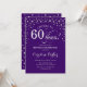 60º Convite de aniversário. Design elegante com prata brilhante falso e roxo. Saúde para 60 anos! Envie-me uma mensagem se precisar de mais personalização.