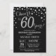 60º Convite de Aniversário com Fundo de Diamante Glitter Negro e Silver. Prata Confetti. Aniversário Adulto. Homens ou Mulheres Aniversário.