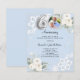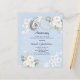 Para um elegante e romântico 60º aniversário de casamento. Um fundo azul claro decorado com flores, rosas, diamantes falsos e rendas brancas. Personalize e adicione sua foto, nomes e detalhes. 1 folha = 1 convite impresso de borda a borda.