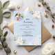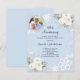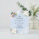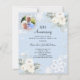 Para um elegante e romântico 60º aniversário de casamento. Um fundo azul claro decorado com flores, rosas, diamantes falsos e rendas brancas. Personalize e adicione sua foto, nomes e detalhes. 1 folha = 1 convite impresso de borda a borda.