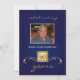 Convites de aniversário personalizados com foto personalizada — convites de aniversário de um marco azul esculino com acentos de ouro decorativo e monograma. Adicione sua própria foto e personalize o nome, a data e os detalhes para qualquer ano ou ocasião feliz. Perfeito para fotos contemporâneas ou antigas. Correspondência de correio e cartões de agradecimento disponíveis. **NOTA: Dimensionado para cartões de convite padrão 5 x 7. Clique em "PERSONALIZAR TI" para alterar o tamanho. Outras cores e estilos disponíveis na galeria.