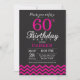 60º Convite de Aniversário com Chevron Preto e Rosa Quente. Chalkboard. Aniversário Adulto. Convidam o Homem ou a Mulher Bday. Para mais personalização, clique no botão "Personalizar" e use nossa ferramenta de design para modificar este modelo.