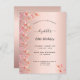 Um convite moderno e bolsa mensageifesta de aniversario elegante para uma 60ª festa de aniversário. Um rosa de ouro cônico é metálico, com aspecto de folha de fundo decorado com prigos botânicos, florais e folhagem cor-de-rosa e rosa. O nome é escrito com um script de estilo manchado de tendência com alternâncias. Texto preto. Para manter as hastes, exclua apenas o nome da amostra, deixe os espaços ou emoji na frente e depois do nome. Traseira: fundo metálico falso rosa dourado. Dica: Se você não quiser que pareça um cartão postal, clique em personalizar, vá para o verso e remova o divisor e o carimbo de posto.