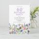 Prepare-se para a festa com este bonito convite floral roxo de 60 anos. Fácil de mudar o texto. Botânica de flor silvestre de aquarela.