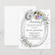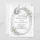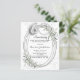 Um fundo branco. Decorado com verde, uma moldura oval e diamantes falsos. Personalize e adicione uma foto, nomes e detalhes. 1 folha = 1 convite impresso de borda a borda.