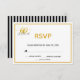 Uma placa de RSVP de 60ª festa de aniversário chic e moderna complementa seu convite para sua sexagésima celebração festa de aniversário. As palavras "60 & SENSACIONAL" são definidas usando a tipografia popular em cores de ouro e texto preto. As cores de texto e fonte podem ser alteradas usando o menu EDIT. Um padrão de listras preto e branco no verso complementa o cartão. Outras cores e padrões estão disponíveis.