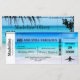 Uma bela imagem do lado do mar é o fundo para este convite de praia tropical de destino de embarque. Um convite personalizado de destino divertido. praia tropical com azul aqua e texto moderno.