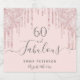 Uma simples e elegante etiqueta de 60º aniversário. Um rosa dourado feminino, fundo cor-de-rosa pincelado decorado com gotas de brilho azul rosa, aparência de pingar tinta. Com o texto: 60 e fabuloso. Personalize e adicione um nome e uma data. Data de nascimento ou data da festa. Texto da cinza. A palavra Fabuloso é escrita com um moderno estilo escrito à mão com traços.