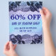 60 OFF Sale Flyer Rosa Floral Blue. Poster de rendas / folheto.