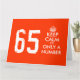 Calma, é só um cartão de saudação de aniversário número 65. Engraçado, fique calmo e continue paródia por 65 anos. Torne a sua própria idade específica do Keepcalme com um número personalizado. Cute setuagésimo aniversário, ideia de presente para homens e mulheres. Surpreenda seu pai sobre a colina, mãe, marido, esposa, tio, tia, avô, avó etc. Piada da idade Hilariante para a comemoração do aniversário de setenta anos. Slogan de Vintage com cor de fundo personalizada.