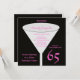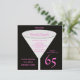 Este 65º convite de aniversário é especialmente para mulheres e apresenta um vidro em fundo preto com o número 65 em rosa e todos os detalhes do convite escritos dentro a cor-de-rosa. Este moderno 65º convite de aniversário certamente agradará. Direitos autorais