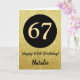 67º Parabéns, preto e Dourado cartão brilhante com nome personalizado. Para mais personalização, clique no botão "Personalizar" e use nossa ferramenta de design para modificar este modelo.