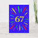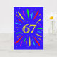 Um cartão de aniversário explosivo de 67 anos! Que maneira maravilhosa de enviar cartões de aniversários. O número 67 em amarelo brilhante com uma explosão de cores brilhantes e estrelas.