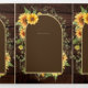 6 lados para adicionar todos os detalhes do evento de casamento necessários. Arca russa de madeira Girassóis temáticos design.