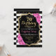 Convite de aniversário de 70. Design cor-de-rosa preto elegante com brilho sujo. Listras brancas e pretas com rosas cor-de-rosa. Perfeito para uma bolsa mensageifesta de aniversario elegante.