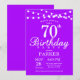 70 Aniversário com Luzes de Cordas. Fundo Lilático Lavanda Roxo. Mulher Lady Elegante Moderna. 13 15 16º 18º 20 21rua 30 40º 50º 60º 80 de 70 100º, qualquer idade. Para mais personalização, clique no botão "Personalizar" e use nossa ferramenta de design para modificar este modelo.