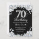 Convite de aniversário de 70. Fundo do Quadro do Diamante do Silver Rhinestone. Convidado Elegante Birthday Bash. Preto e Branco. Aniversário Adulto. Mulheres Aniversário. Homens Aniversário. Para mais personalização, clique no botão "Personalizar" e use nossa ferramenta de design para modificar este modelo.
