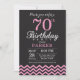 Convite de aniversário de 70 com Chevron preto e rosa. Chalkboard. Aniversário Adulto. Convidam o Homem ou a Mulher Bday. Para mais personalização, clique no botão "Personalizar" e use nossa ferramenta de design para modificar este modelo.