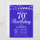 70 Birthday Invitation com luzes de cordas. Fundo Azul Real. 13 15 16º 18º 20 21 rua 30 40º 50º 80 de 60º 70 de 100º, qualquer idade. Para mais personalização, clique no botão "Personalizar" e use a ferramenta design para modificar este modelo.
