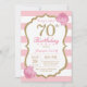 Convite de Aniversário de 70. Rosa e Dourado. Dourada Glitter. Listras brancas e rosa. Flor Floral Rosa. Aniversário Adulto. Festa de aniversário feminina.