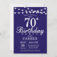 70 Aniversário com Luzes de Cordas. Fundo Azul marinho. 13 15 16º 18º 20 21rua 30 40º 50º 60º 80 de 70 100º, qualquer idade. Para mais personalização, clique no botão "Personalizar" e use nossa ferramenta de design para modificar este modelo.