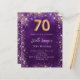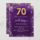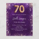 Celebre um 70 especial de aniversário com este convite maravilhoso, perfeito para uma festa elegante. O fundo roxo profundo apresenta uma bela textura irregular, realçada por rosa dourado e ouro faux spakles para um toque de brilho. O nome é escrito em um texto delicado, escrito à mão, acrescentando um toque personalizado e sofisticado. Personalize o convite adicionando o nome e todos os detalhes importantes da parte. Este design luxuoso dá o tom para uma celebração inesquecível. 1 folha = 1 convite impresso de borda a borda.