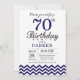 Convite de aniversário de 70 com Marinho Blue Chevron. Preto & Branco. Aniversário Adulto. Convidam o Homem ou a Mulher Bday. Para mais personalização, clique no botão "Personalizar" e use nossa ferramenta de design para modificar este modelo.