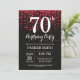 Convite de aniversário de 70 com luzes de cordas vermelhas com fundo brilhante vermelho. Aniversário Vermelho. Aniversário Adulto. Homens ou Mulheres no Dia Convidam. 13 15 16º 18º 20 21rua 30 40º 50º 60º 80 de 70 100º, qualquer idade. Para mais personalização, clique no botão "Personalizar" e use a nossa ferramenta de design para modificar este modelo.ILVER