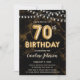 Esses convites de festas de aniversários 70 apresentam balões dourados e folha de alumínio com as luzes de cordas em um fundo branco e roxo. Personalize o texto com a sua própria redação.